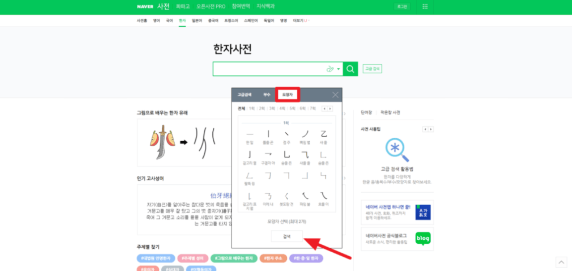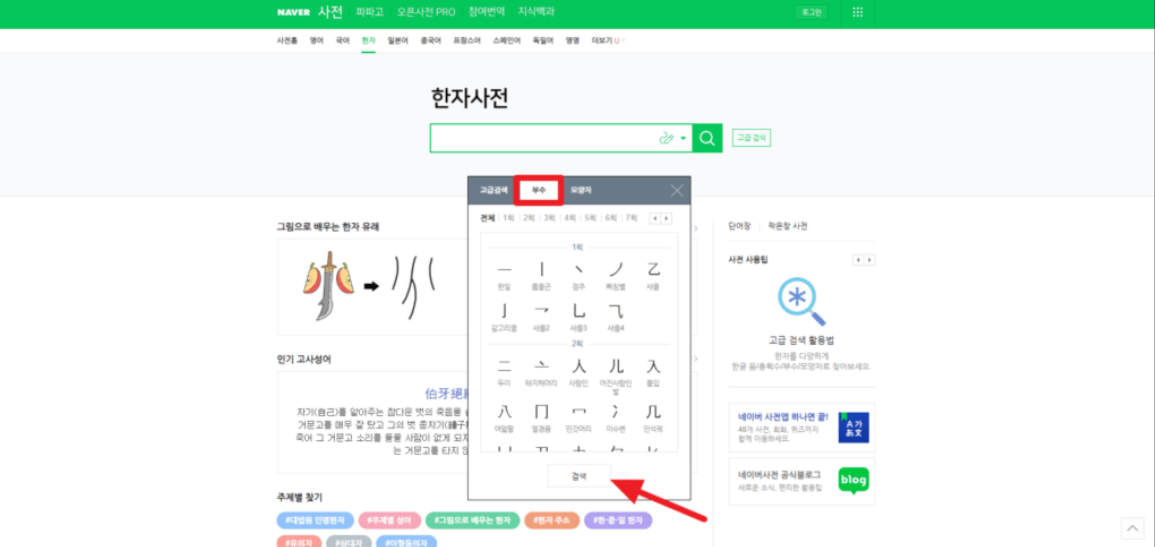 네이버 한자 필기입력기 사용방법
